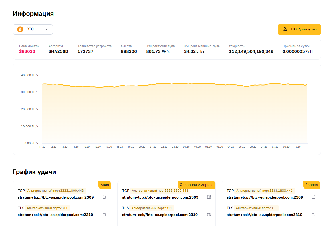 Если вы ищете стабильный и удобный пул с конкурентоспособными условиями, Spiderpool может быть отличным выбором для вашего майнинга.